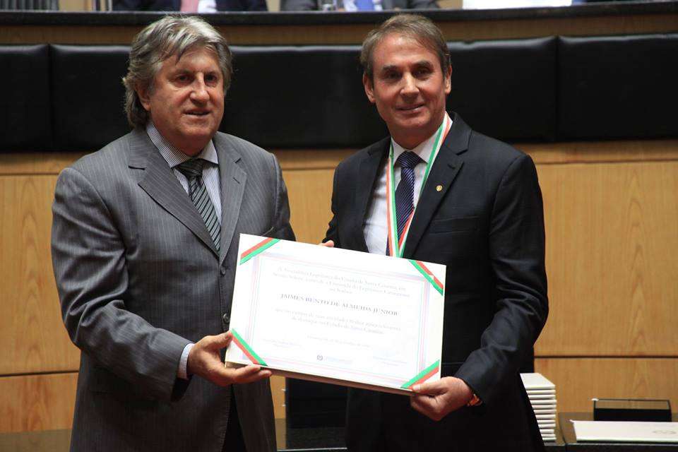 Leia MaisDetailsO CEO da Almeida Junior, Jaimes Almeida Junior, recebeu ontem (21/11) a Comenda do Legislativo Catarinense 2016, a maior honraria...